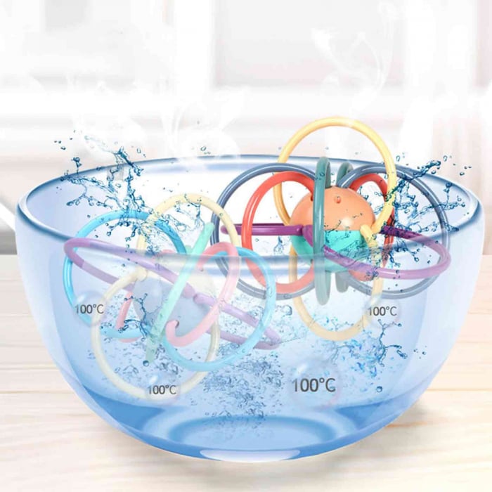 • Inele flexibile din cauciuc moale – ușor de prins și perfect de mestecat