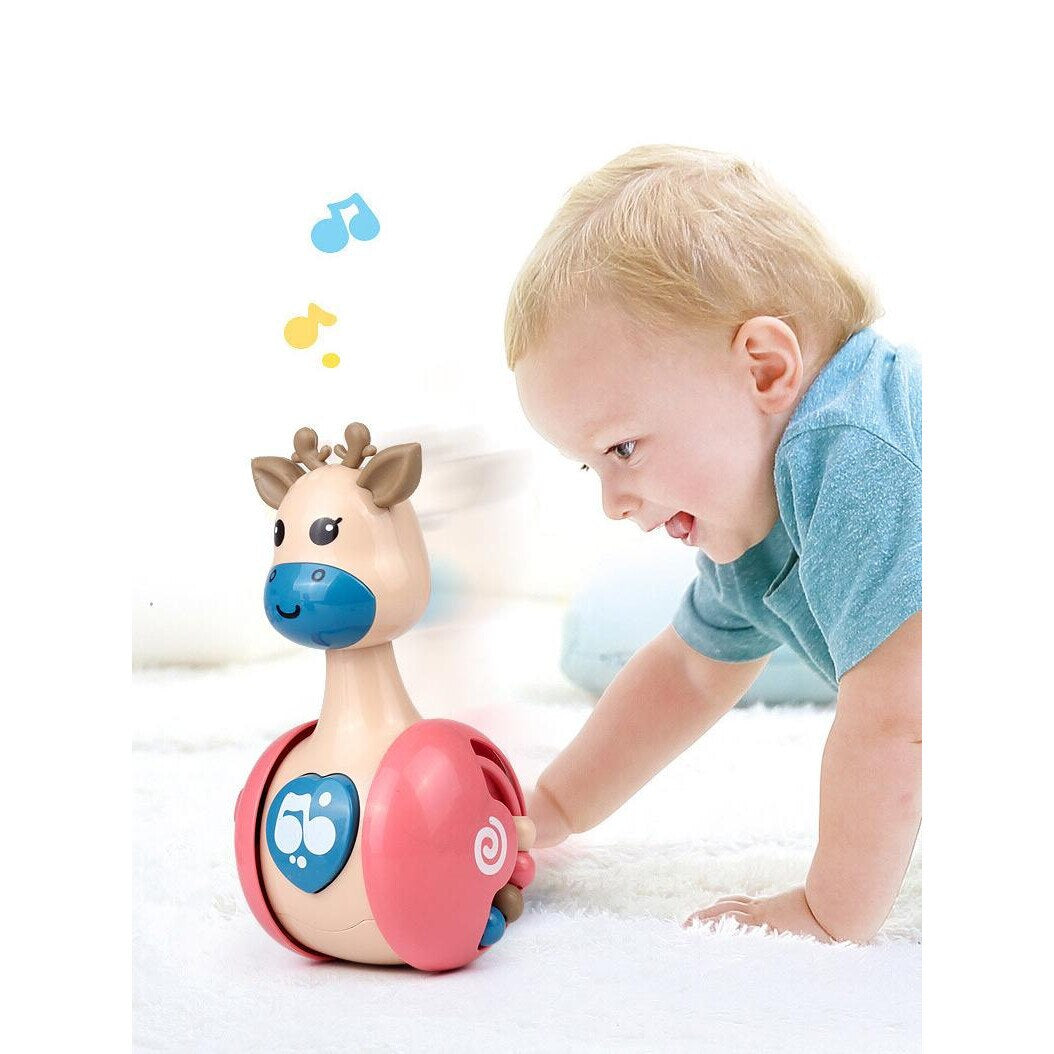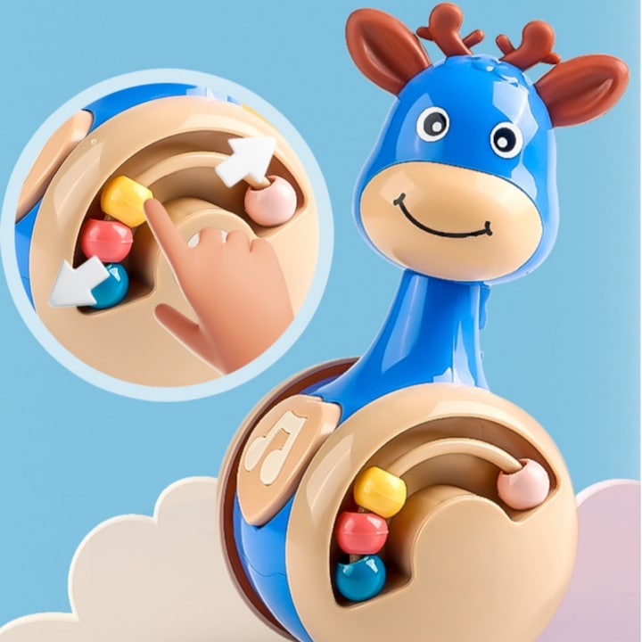 Această jucărie muzicală tip tumbler este perfectă pentru bebeluși, fiind concepută să se balanceze delicat și să producă sunete plăcute atunci când este împinsă. Este o alegere excelentă pentru stimularea simțurilor și pentru joaca de explorare.