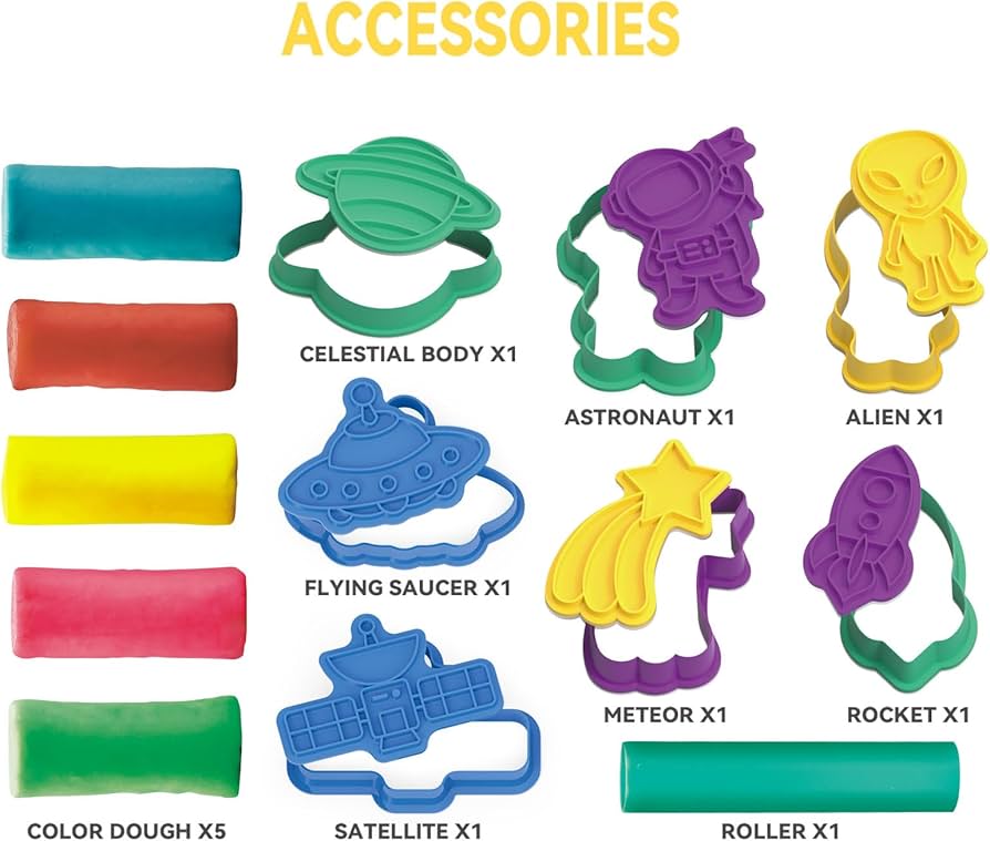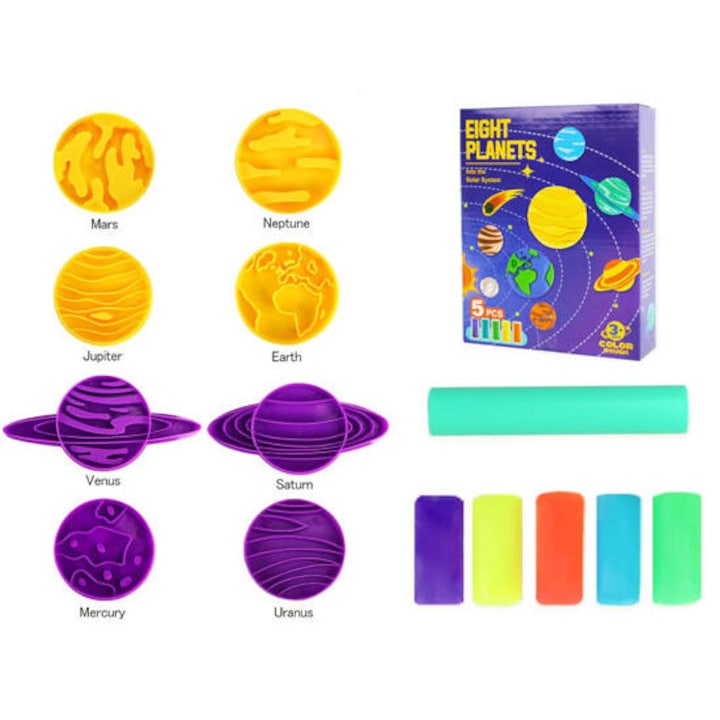 Un set creativ și educativ, perfect pentru copiii care vor să-și dezvolte imaginația și abilitățile artistice, în timp ce descoperă universul planetelor. Plastilina este special formulată pentru a fi non-toxică și sigură pentru cei mici, oferindu-le o experiență de joacă plăcută și fără griji.