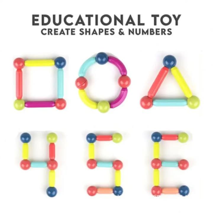 Fiecare tub curbat sau drept, fiecare biluță magnetică devine o piesă dintr-un puzzle imaginar pe care copilul îl creează după propriile idei: litere, cifre, forme geometrice, obiecte abstracte sau mini-structuri 3D care se „prind” instant datorită magnetismului.