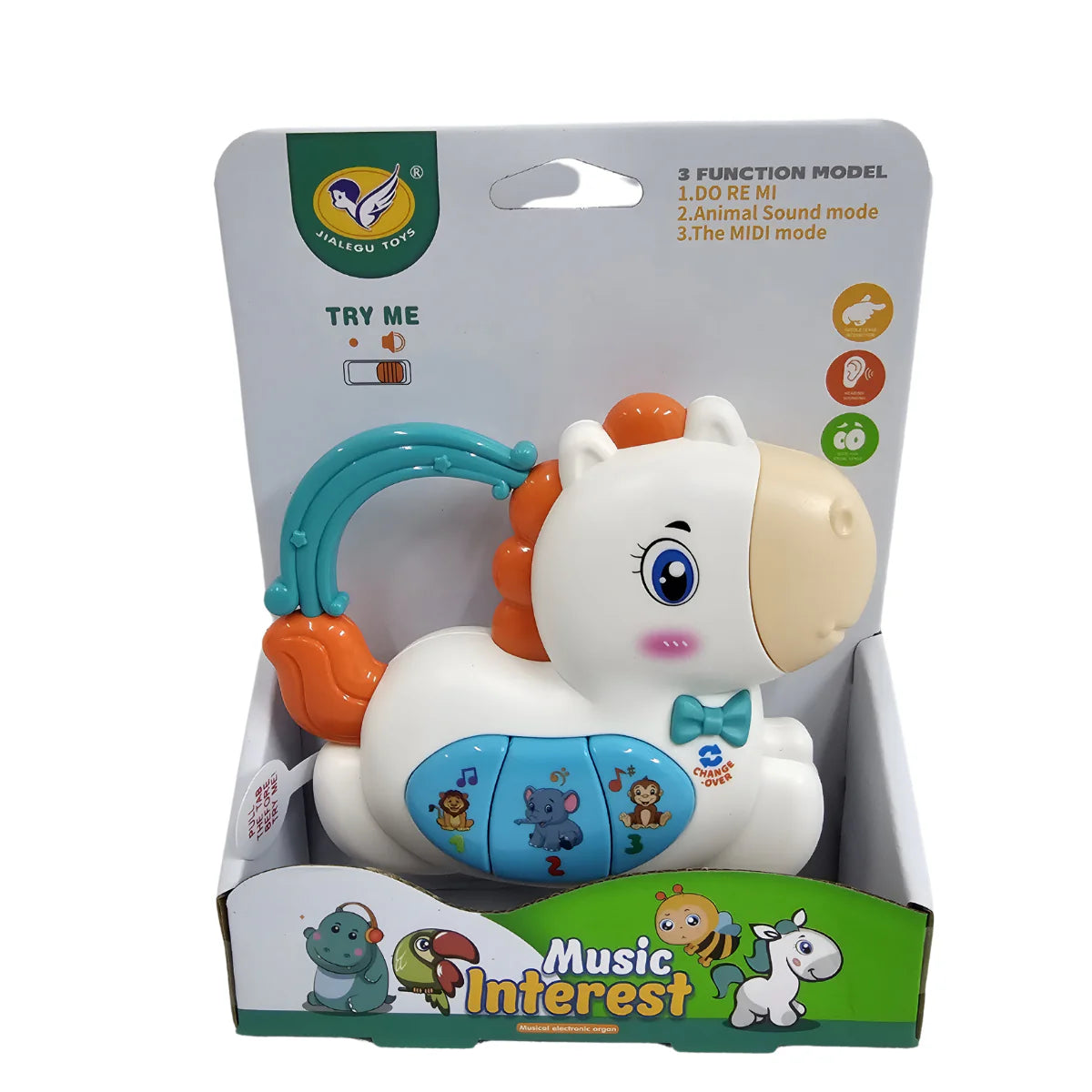 Descoperă lumea magică a sunetelor alături de Căluțul muzical, un mini-pian adorabil creat special pentru primele experiențe muzicale ale bebelușului tău.