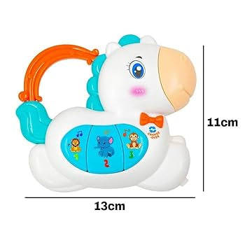 Forma de căluț face din acest pian un companion simpatic și ușor de iubit. Cu dimensiuni potrivite pentru mâinile micuțe – 13 x 11 x 3,5 cm – și o greutate de doar 100 g, jucăria poate fi luată oriunde: acasă, în parc sau în călătorii.