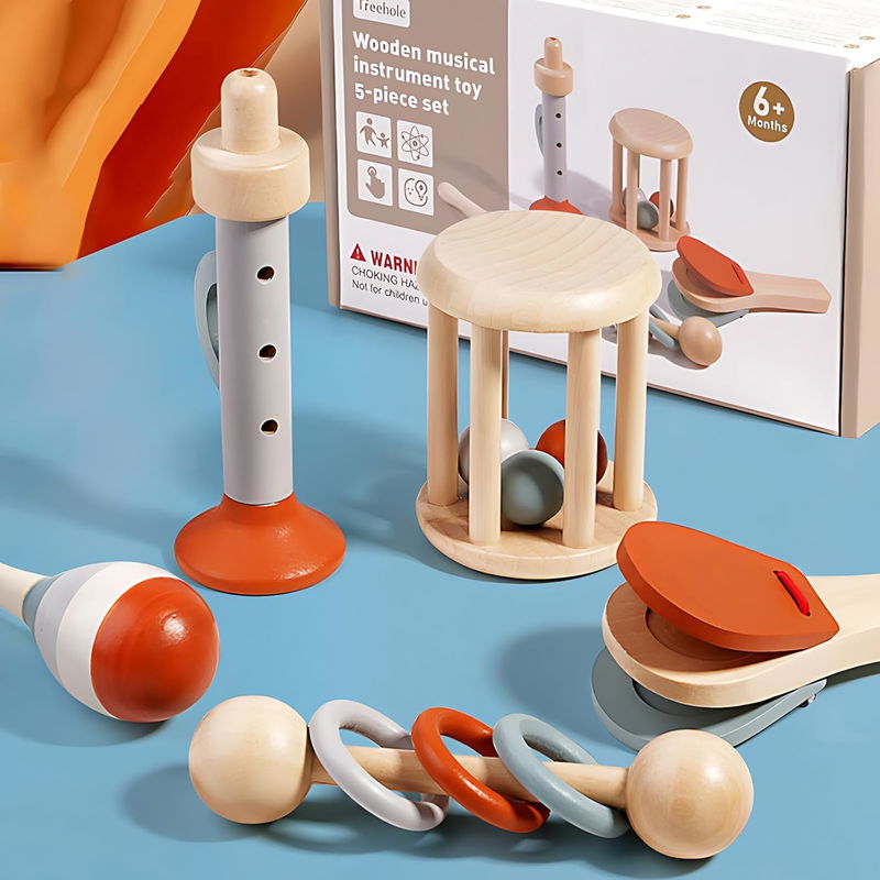 Set instrumente muzicale din lemn pentru bebeluși – joacă senzorială și descoperire prin sunet